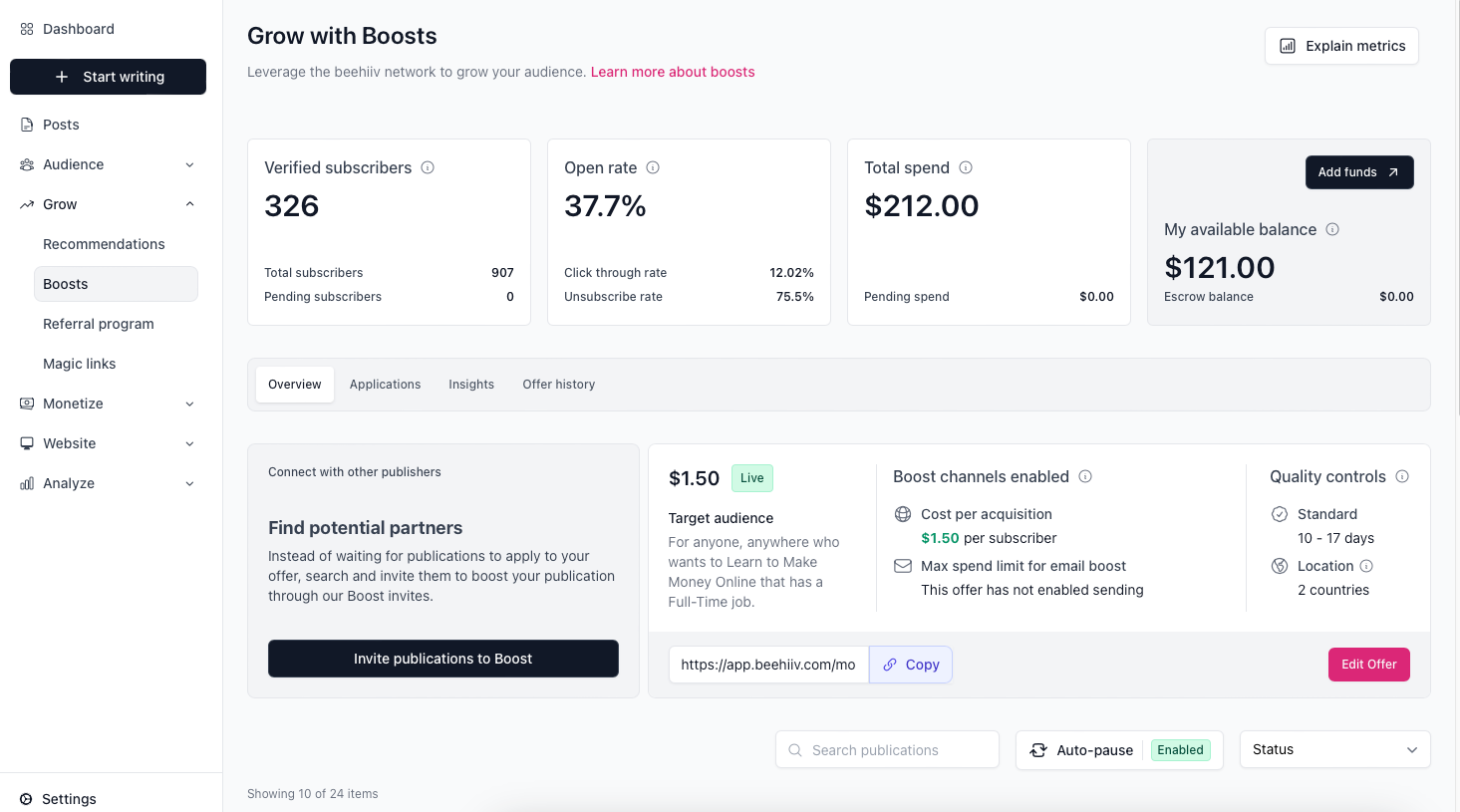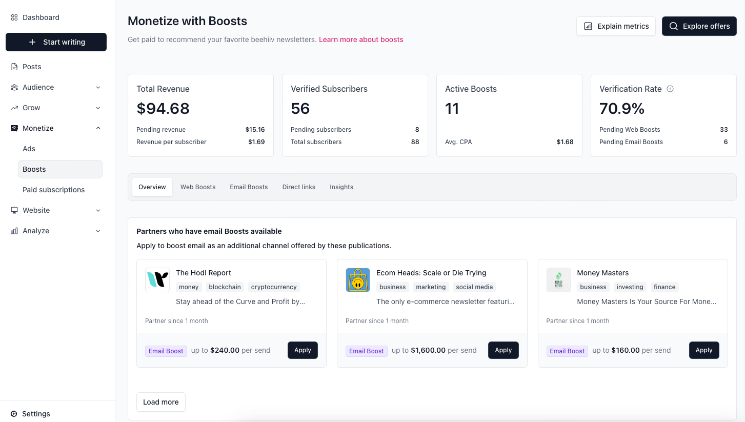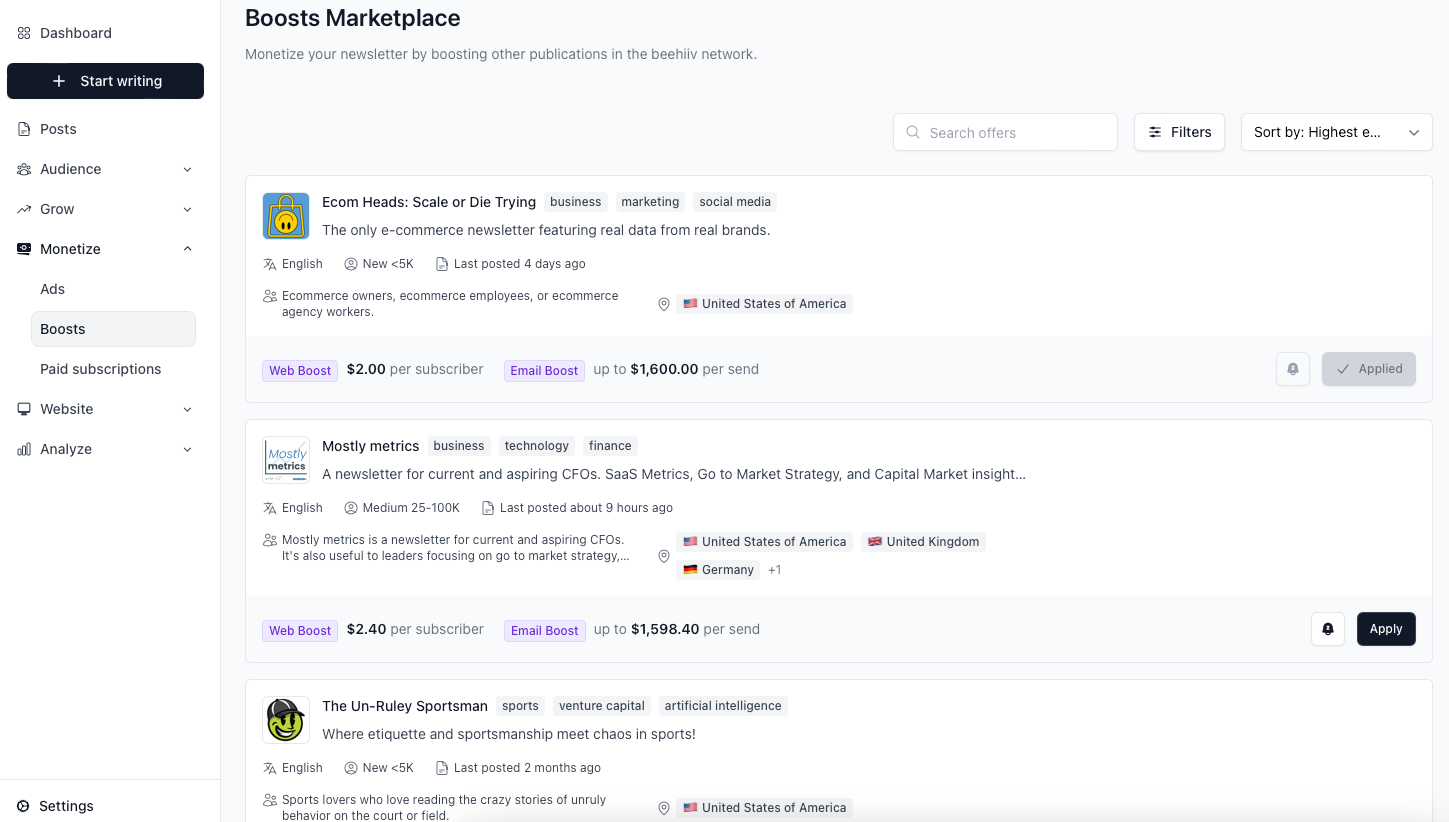 Soon you'll have newsletter publications knocking on your door to apply to boost.