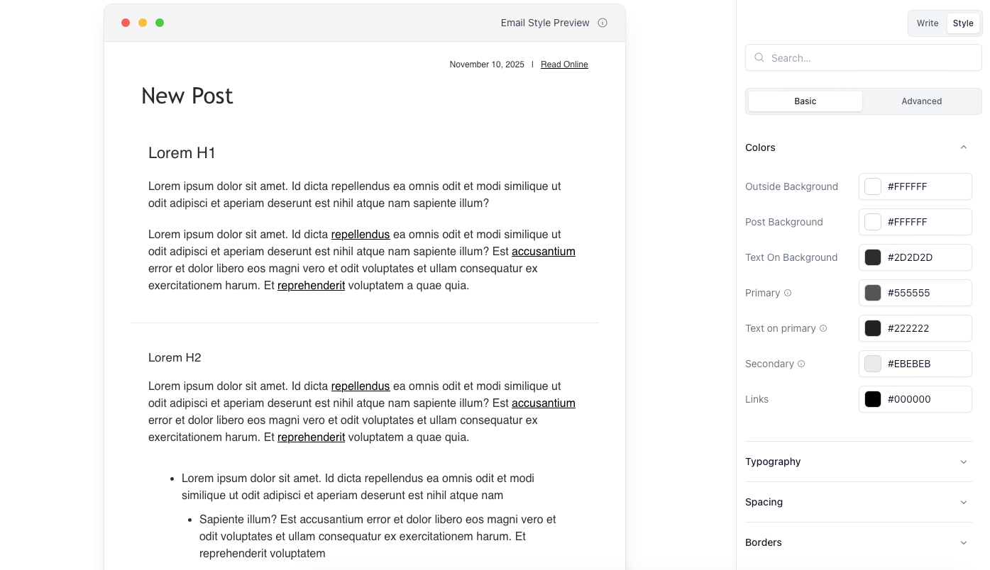 If you click the Style button to the far right this is where you'll be able to change your font, colors, spacing, borders and really start to create your own template.