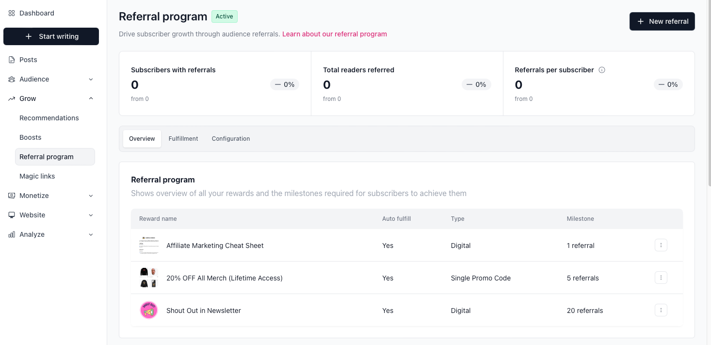 Referring 20 people they'll receive a Shout-Out in my weekly newsletter.