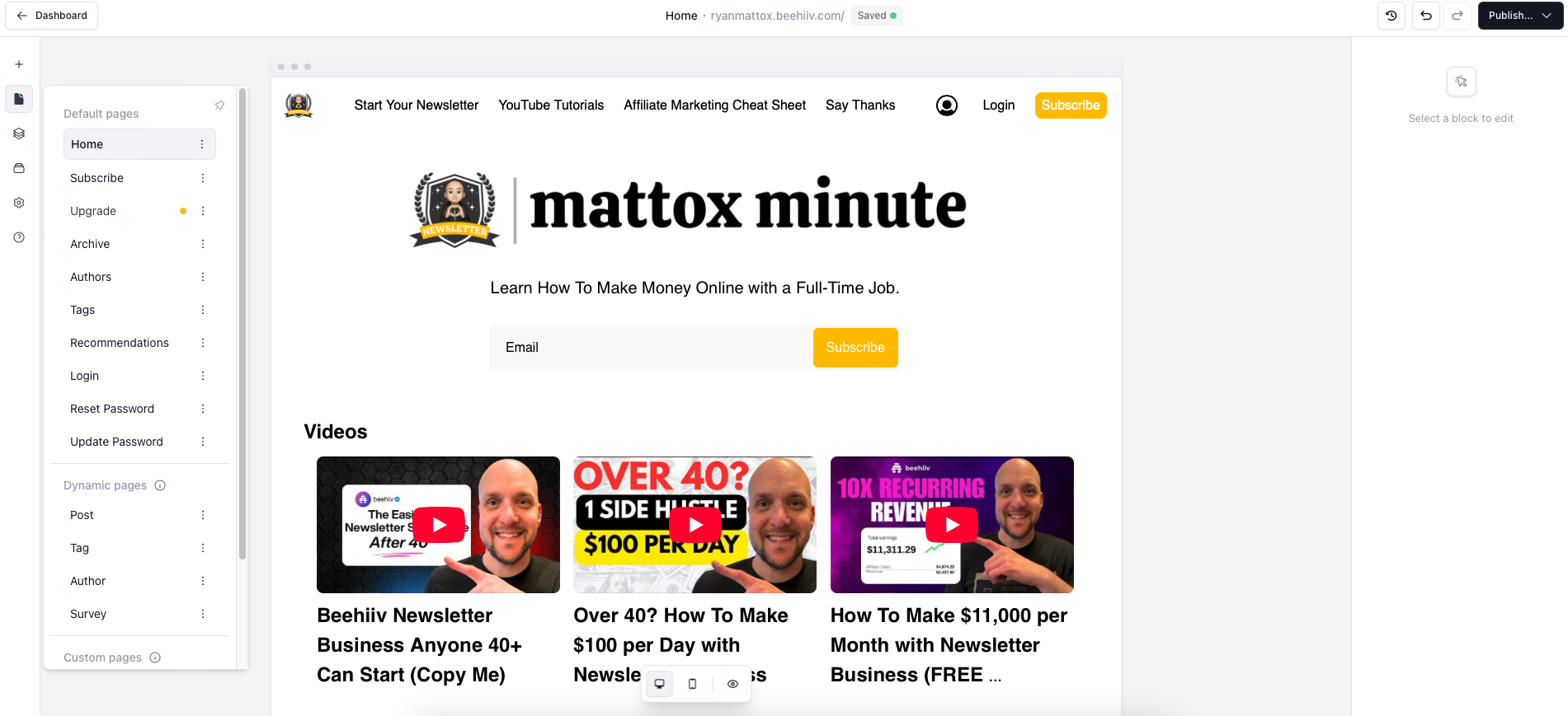 Here's a couple more of my YouTube video tutorials to help guide you through setup of your newsletter and how to start monetizing from Day #1.