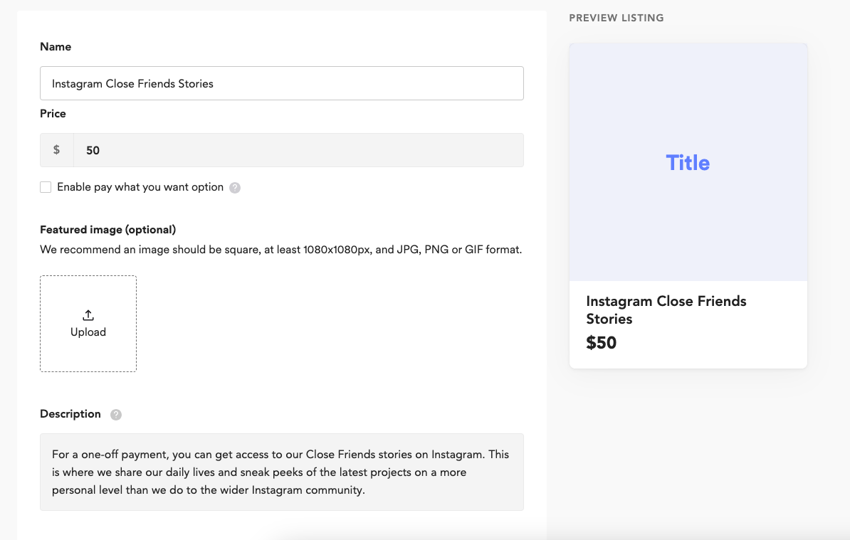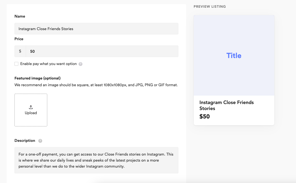 This option is unique in that it can be used with ANY social media platform, not just Instagram. Give your supporters backstage/behind the scenes access to special content you don't release anywhere else. This option will be a Winner for ANY loyal supporter of yours.