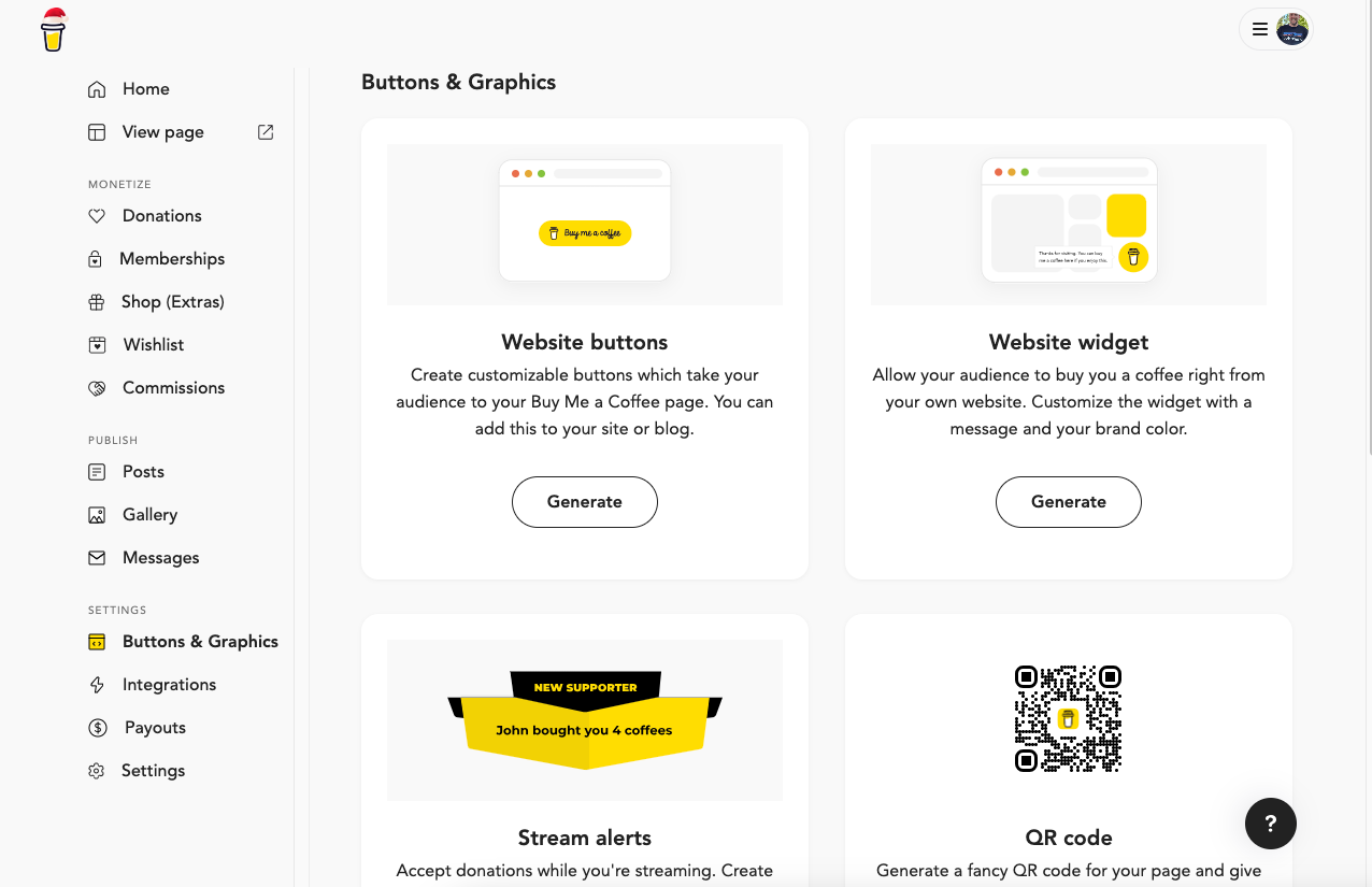 Buy Me A Coffee makes promoting and sharing your unique referral links so easy they have laid out multiple ways to promote on various platforms.