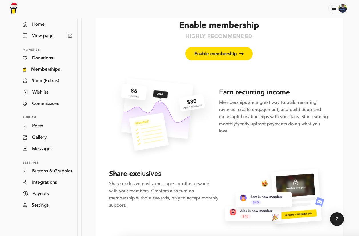 Memberships are a fantastic way to provide additional content for your most loyal supporters. Not only can you earn recurring income every month but you can have fun interacting with your supports on a whole new level than you would on major social media platforms.
