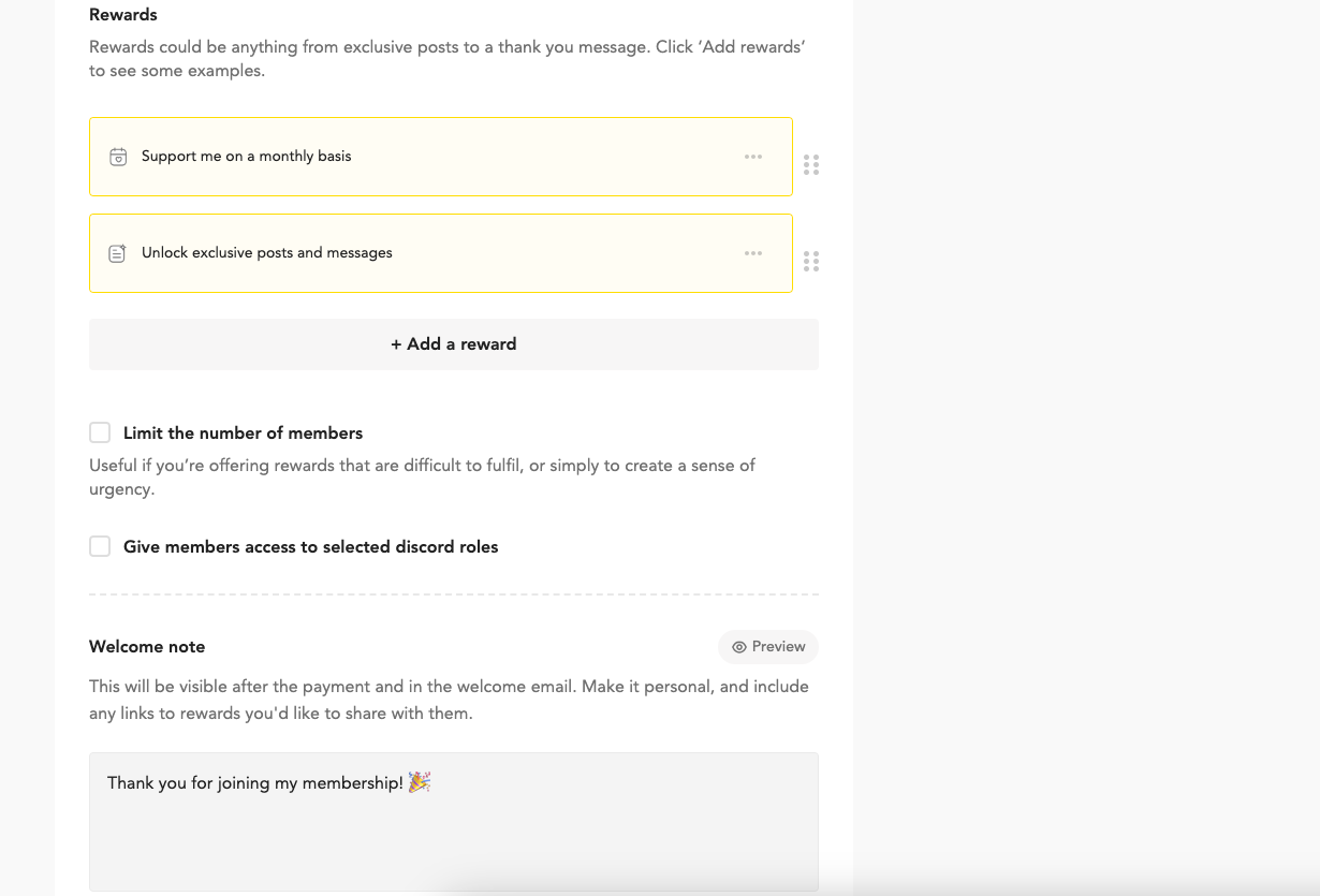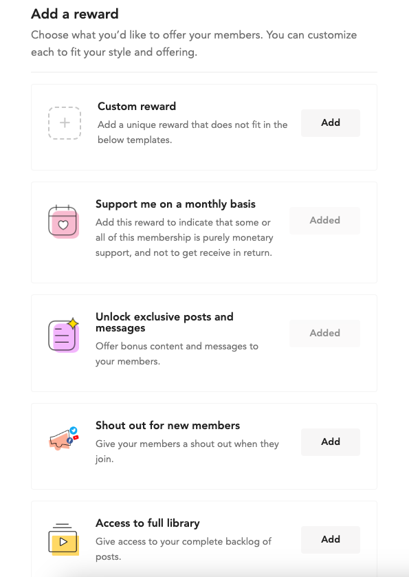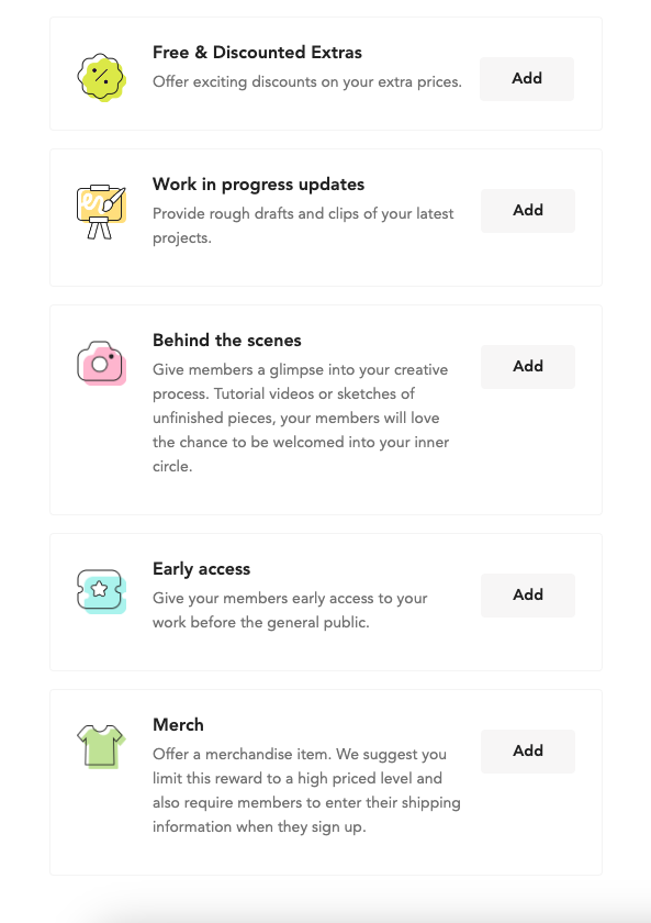 It's up to you what you'd like to give out as a reward to your loyal supporters!