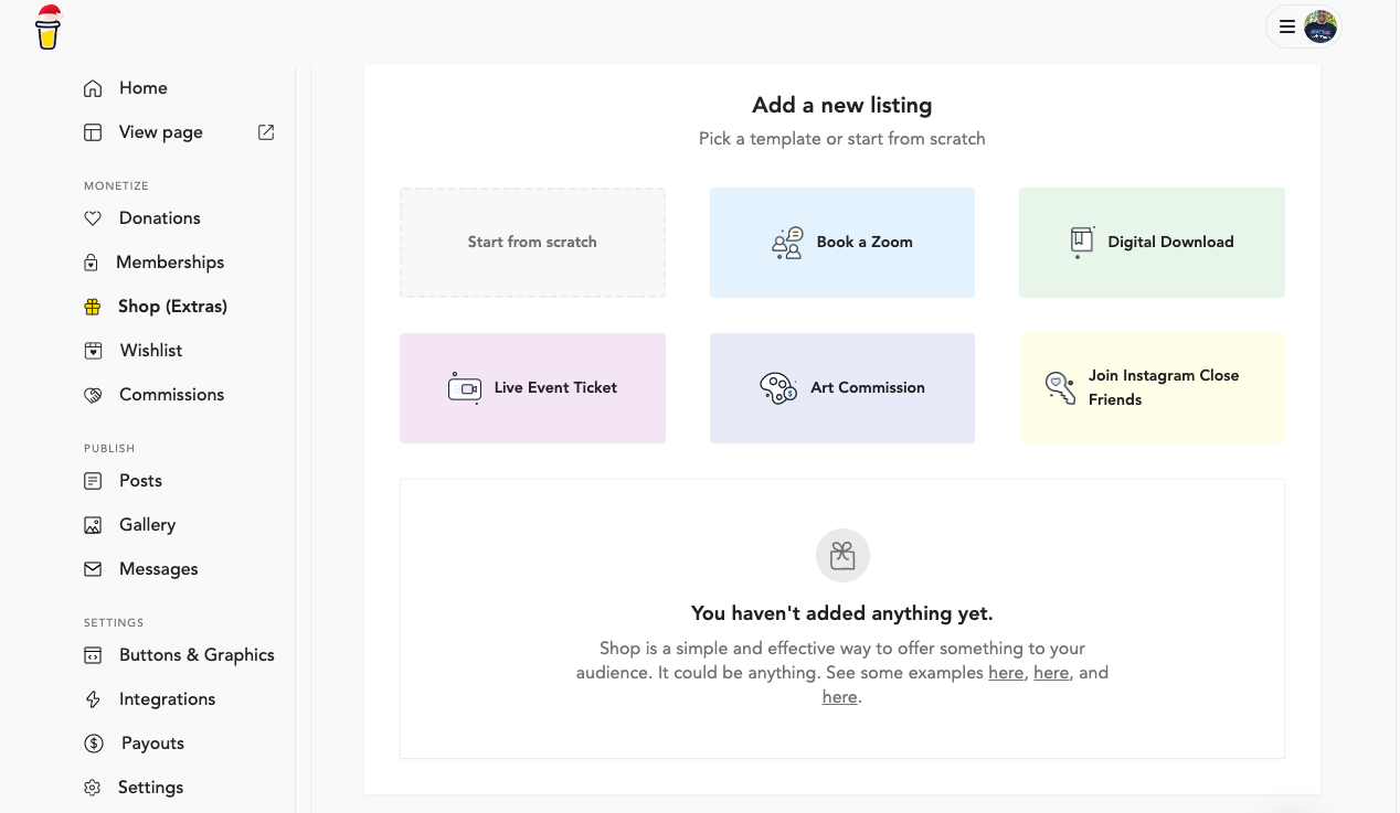 The Shop (Extras) feature absolutely sets BMC apart from all other donation sites. They make it extremely easy to sell/monetize additional bonuses or content for free!