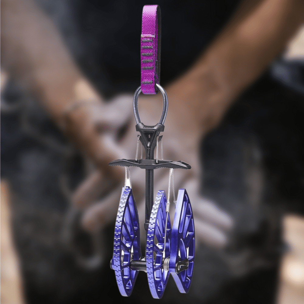 The TripleGrip cam lobes are designed for increased holding power and reduced walking. The dual axle, single stem provides 360 degree flexibility and the greatest range. The thumb press, hot forged ergonomic press improves handling. The extendable 8mm Dyneema sling saves on quickdraws. The colour coded cams are easy to size identify. With all these features, the TripleGrip is a great choice for your climbing needs.